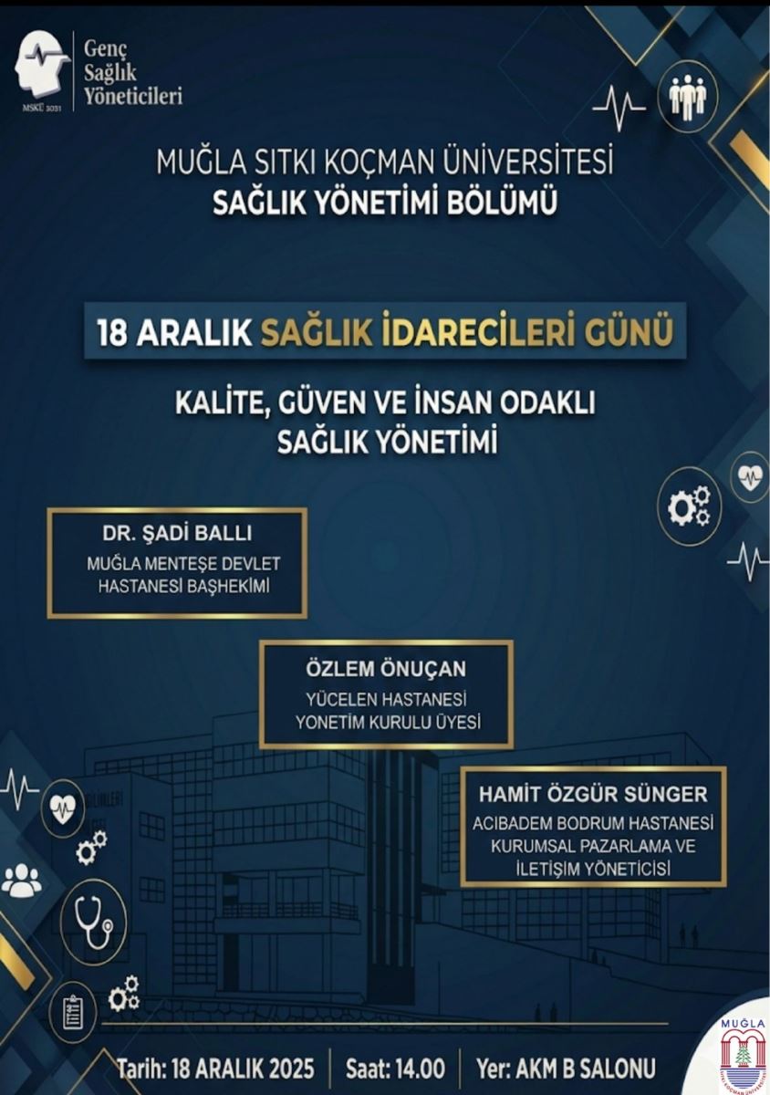 Sağlık Yönetimi Bölümü tarafından 18 Aralık 2025 günü Sağlık İdarecileri Günü kapsamında Genç Sağlık Yöneticileri Topluluğu'nun katkılarıyla "Kalite, Güven ve İnsan Odaklı Sağlık Yönetimi" temalı panel düzenlenmiştir.